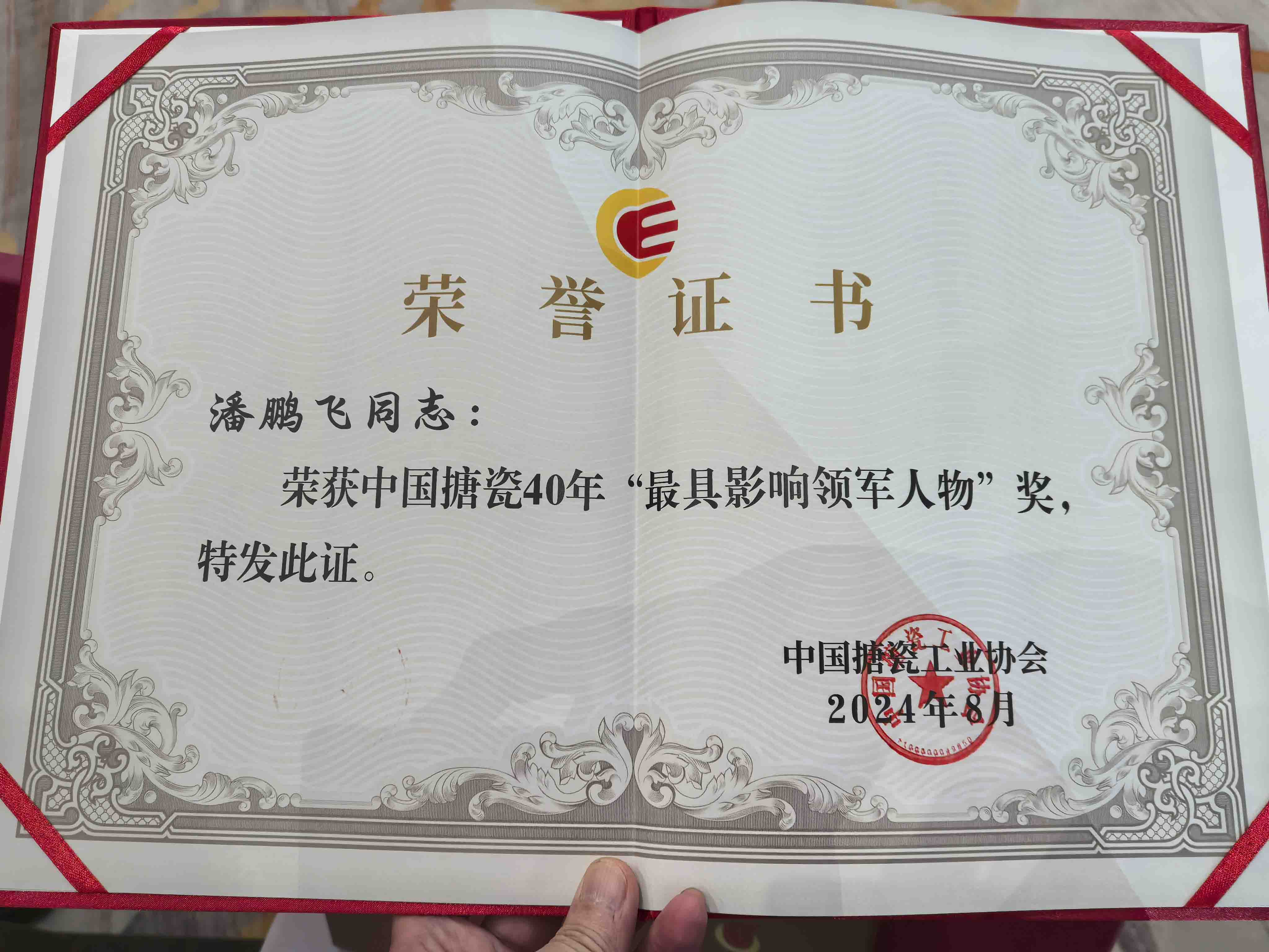 表彰了中國搪瓷行業(yè)先進人物,其中最高榮譽獎項為“中國搪瓷40年最具影響領(lǐng)軍人物”(全國共20名),中邦公司董事長